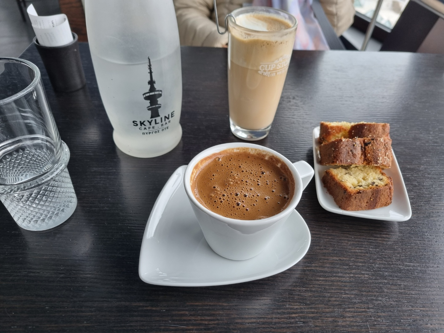 OTE 타워 카페 점심(샌드위치2, 라떼, 그릭 커피) €35