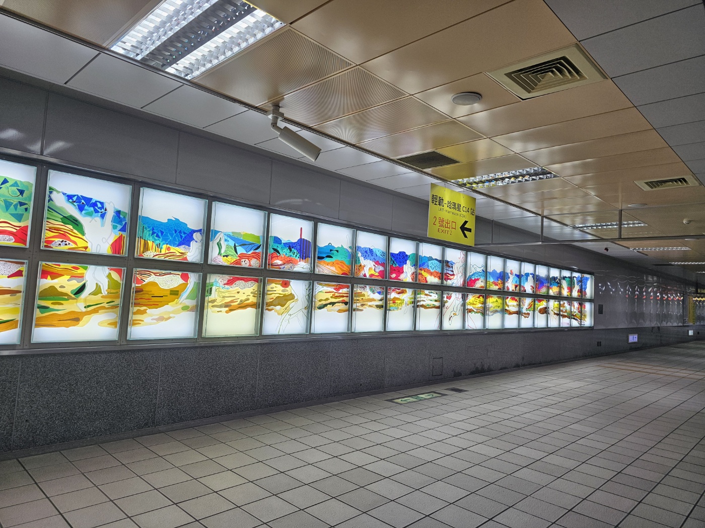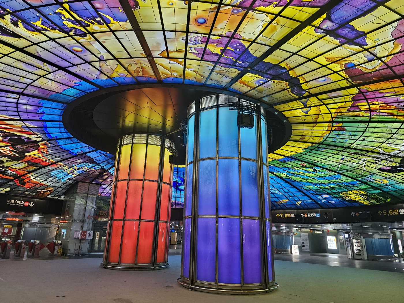 1998년에 완공된 이 역은 이탈리아 예술가 '마티아스 구시츠(Mathias Gotitz)'가 설계했다고 한다. 역 천장에는 자연 채광을 이용한 거대한 스테인드 글라스 작품 '빛의 하늘(光之穹頂)' 이 설치되어 있으며, 다양한 색깔의 조명이 빛을 발한다. 원반 형태로 지어진 역은 모든 방향으로 나갈 수 있도록 독특하게 설계되었다. 특히 2003년부터 시작된 매일 밤 8시부터 10시까지 30분마다 펼쳐지는 '빛과 음악의 쇼' 는 놓칠 수 없는 볼거리라고 한다.(이 정보는 현재 유효한 지 정확히 알 수 없으니 만약 이 쇼를 보기 위해 방문한다면 반드시 확인할 필요가 있다.)